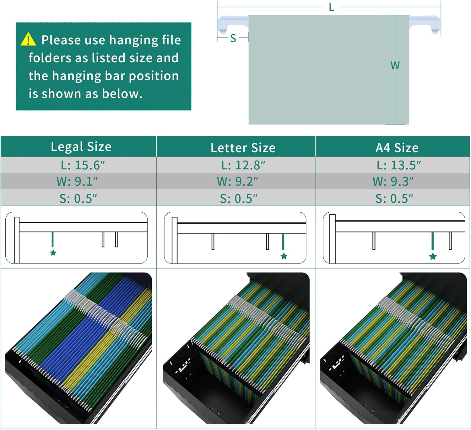 - 【Premium Drawers】The top drawer contains a removable pencil tray, while the bottom drawer features a removable hanging file bar that accommodates letter, legal, and A4 size documents; Keep your files organized