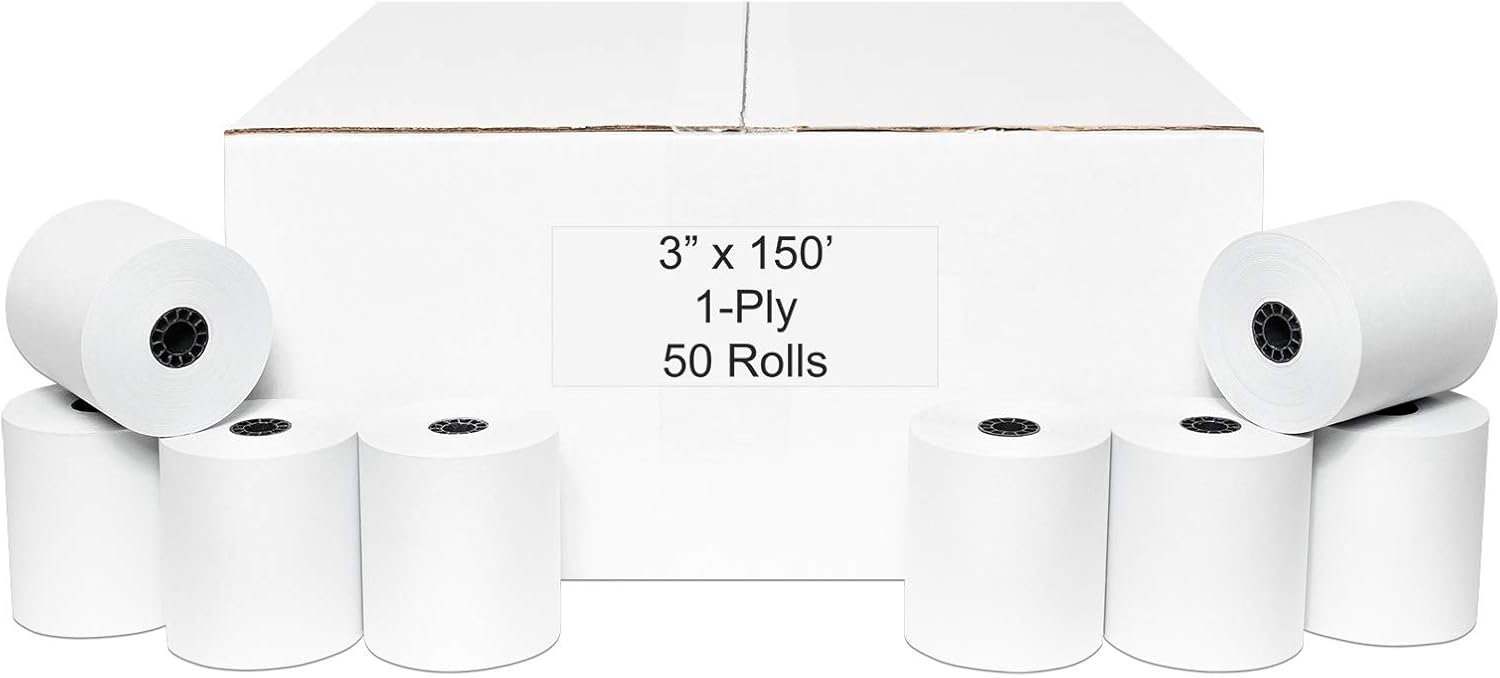 3" x 150' 1-Ply Bond Paper (50 rolls/case) Kitchen Printer Receipt Paper