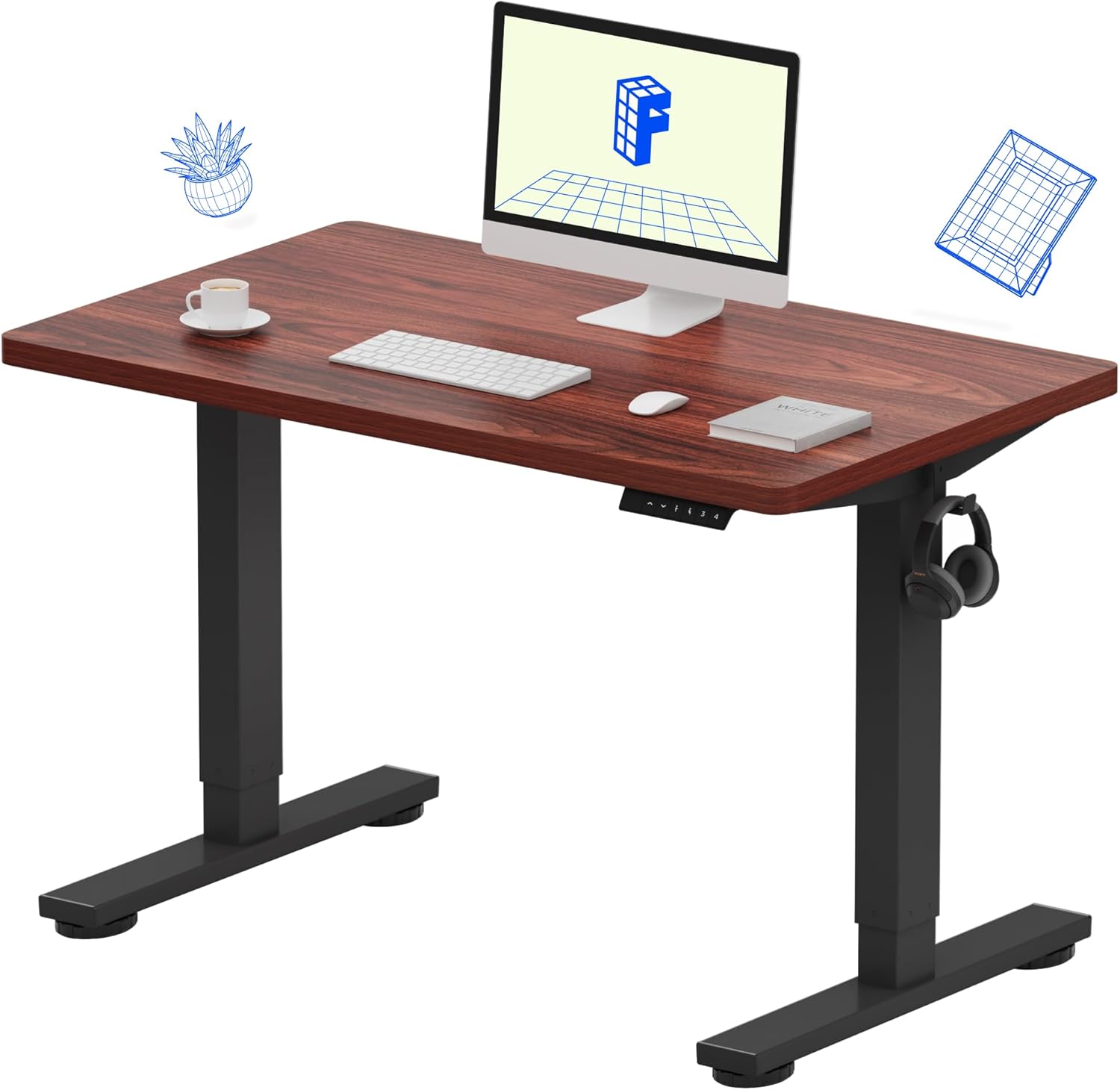 FLEXISPOT EN1 Whole-Piece Standing Desk 40x24 Electric Adjustable Height Small Heavy Duty Steel Stand Up (Black Frame + Mahogany Top, 2 Packages)