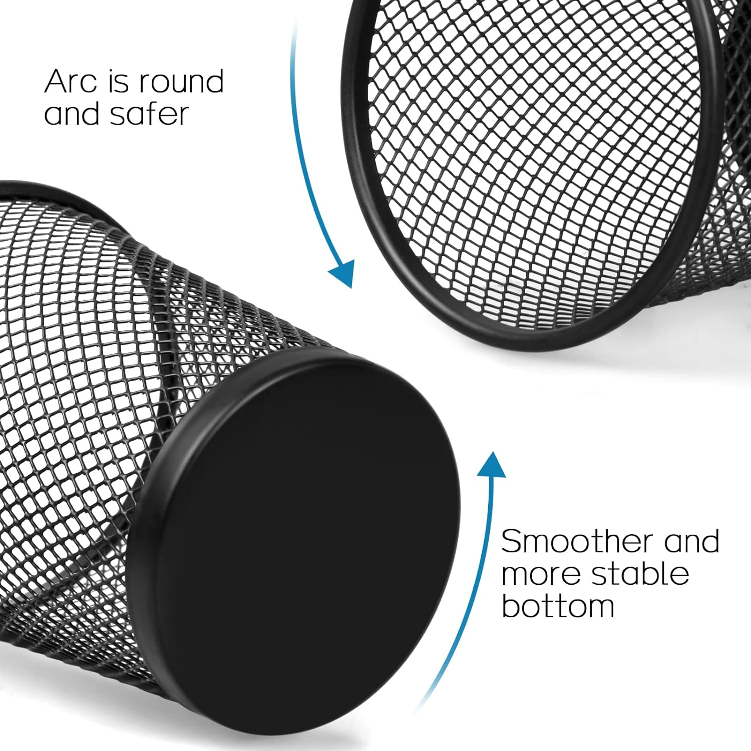 - Round metal mesh pencil holder with smooth edges for comfortable grip