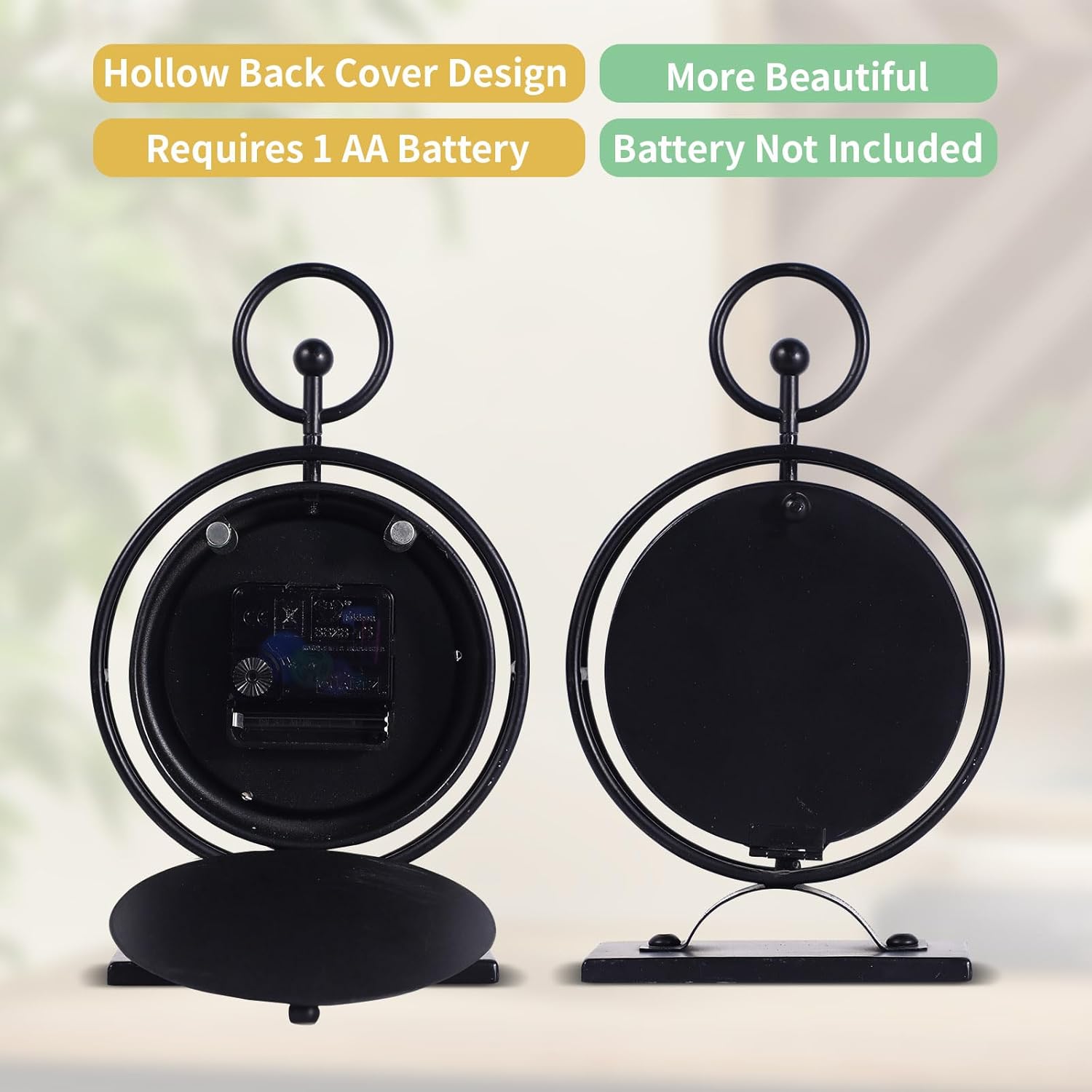 - UNIQUE DESK CLOCK – This farmhouse table clock is made of metal,features a hollow out back cover,painted in retro black for a vintage look. This classic vintage table clock is a timeless piece that will be sure to add a touch of sophistication to any room.