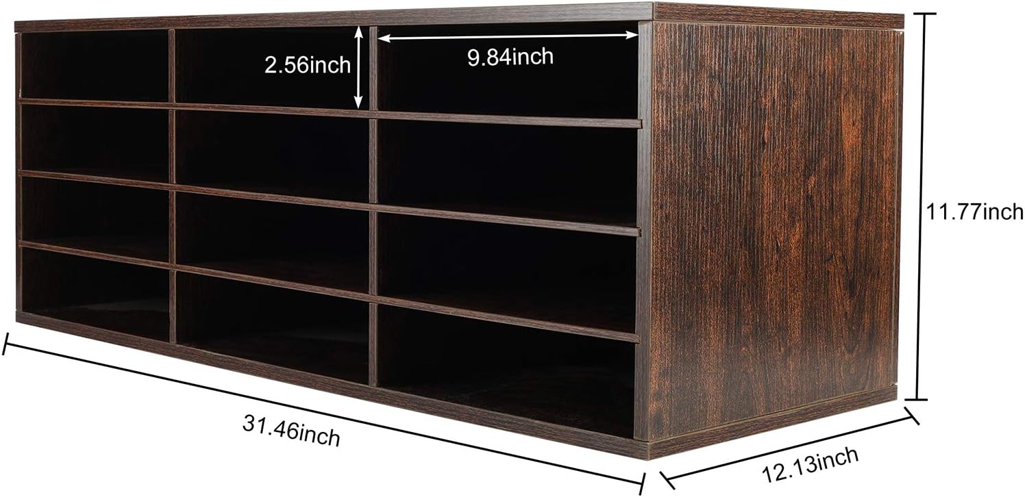 PAG Mail Sorter, Wood Countertop Literature Organizer, Student Mailbox for Classroom, Desktop Bill Paper Organizer for Office Home School, 12 Compartments, Brown