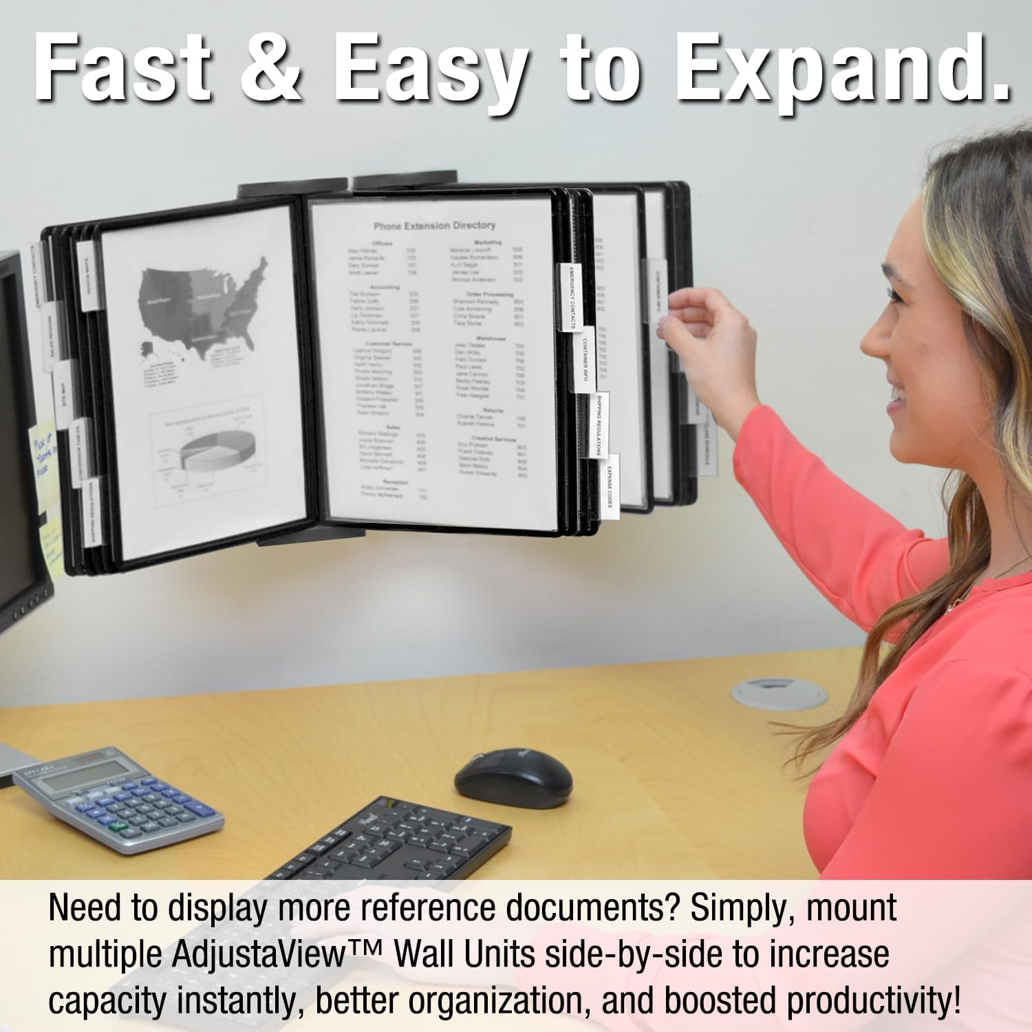 Ultimate Office AdjustaView 10-Pocket Wall Reference Organizer with Easy-Load Pockets and Mounting Screws, Black Pockets