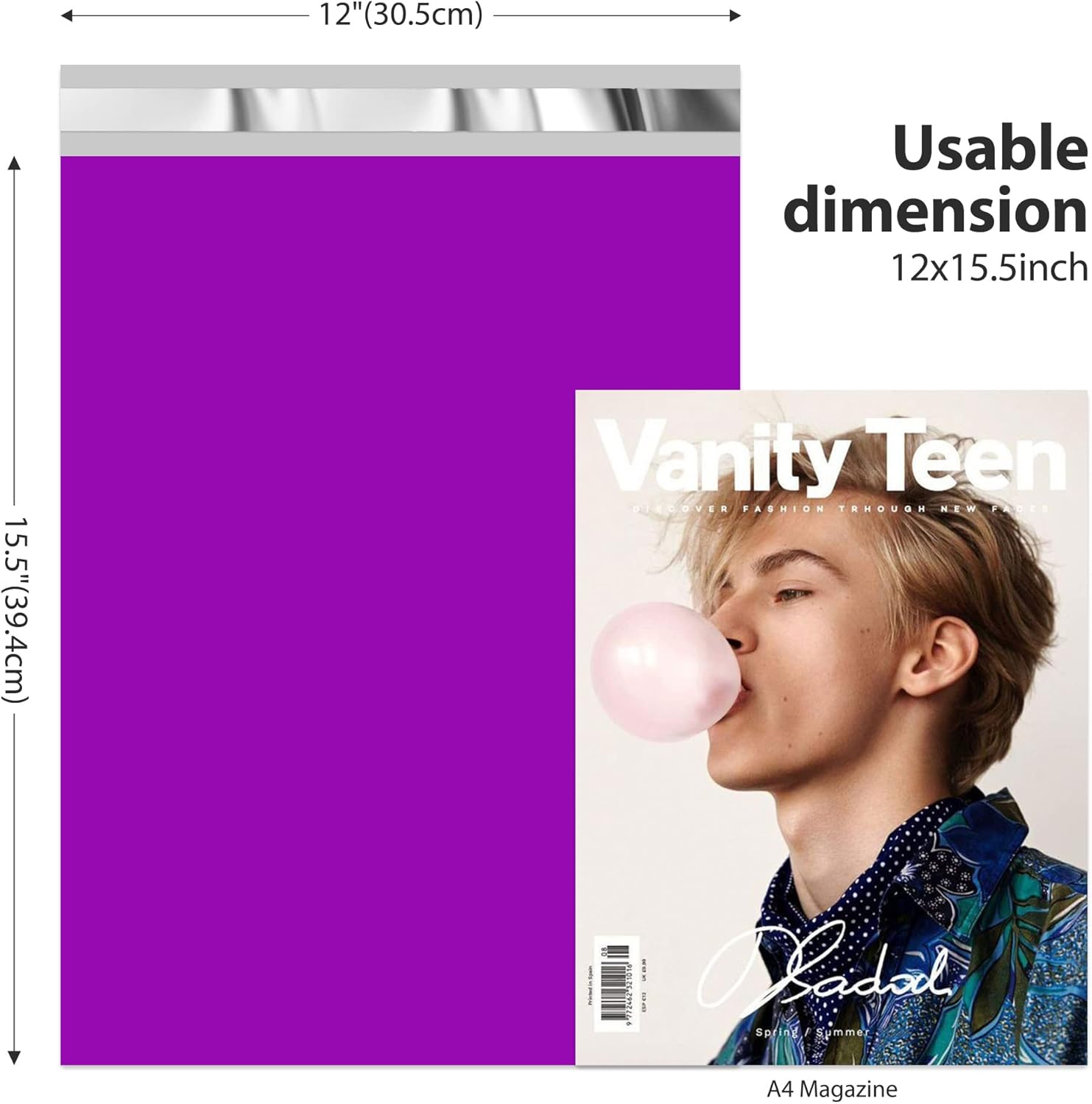 - 【Purple Poly Mailers】 - Fuxury custom colored poly mailers are a reliable shipping and packaging solution for your retail or online business. These mailing envelopes measure 12x15.5 inches, pack of 100 Shipping bags. These shipping bags are a fun and fashionable way to ship your packages.