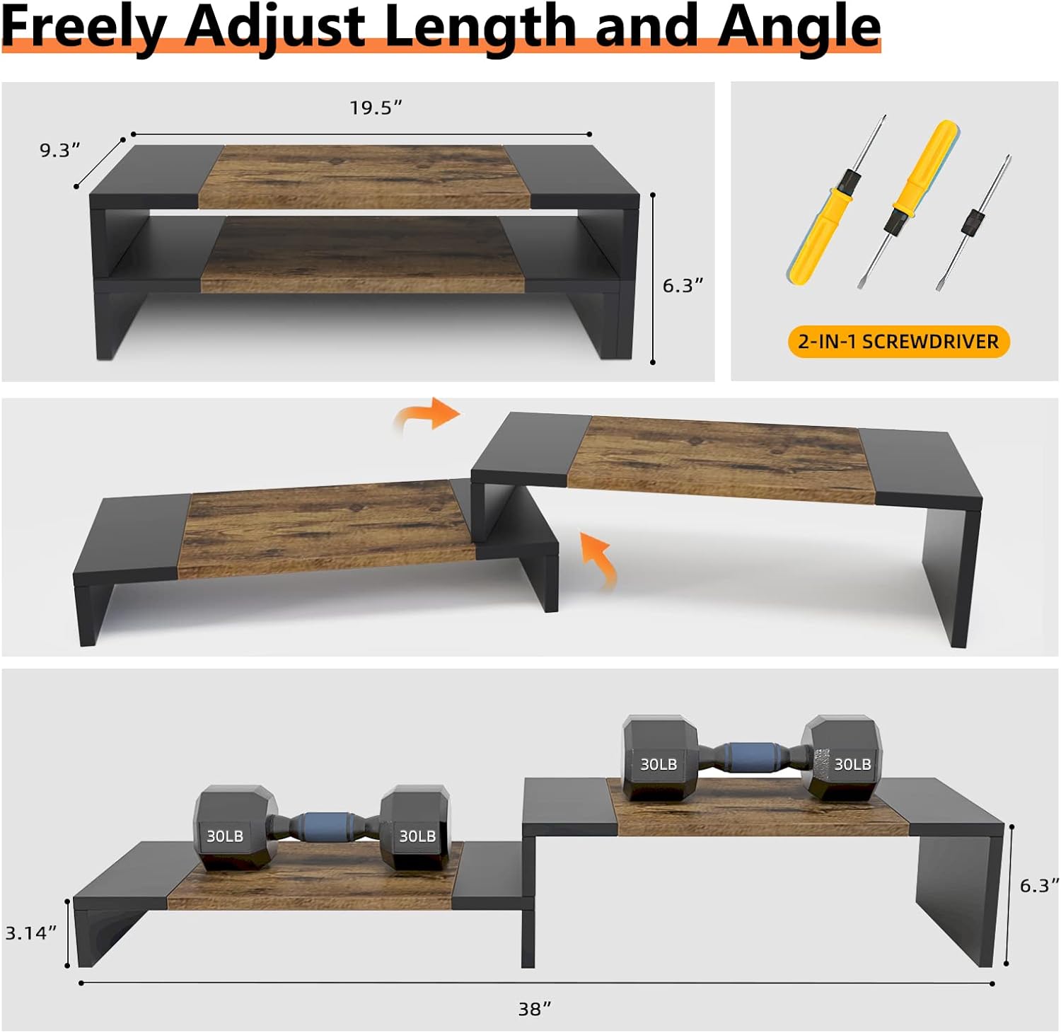 WESTREE Dual Monitor Stand - Riser 2 Shelf Computer with Adjustable Length and Angle, Stands for Monitors, Desktop Organizer PC, Computer, Laptop