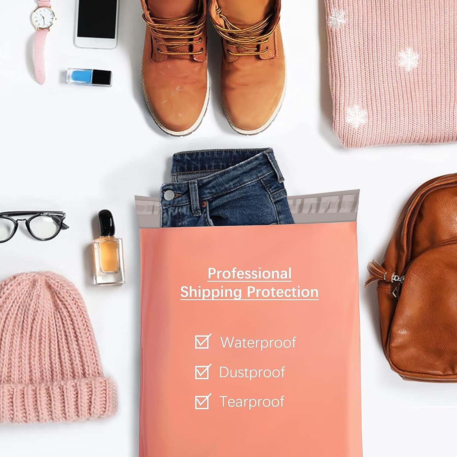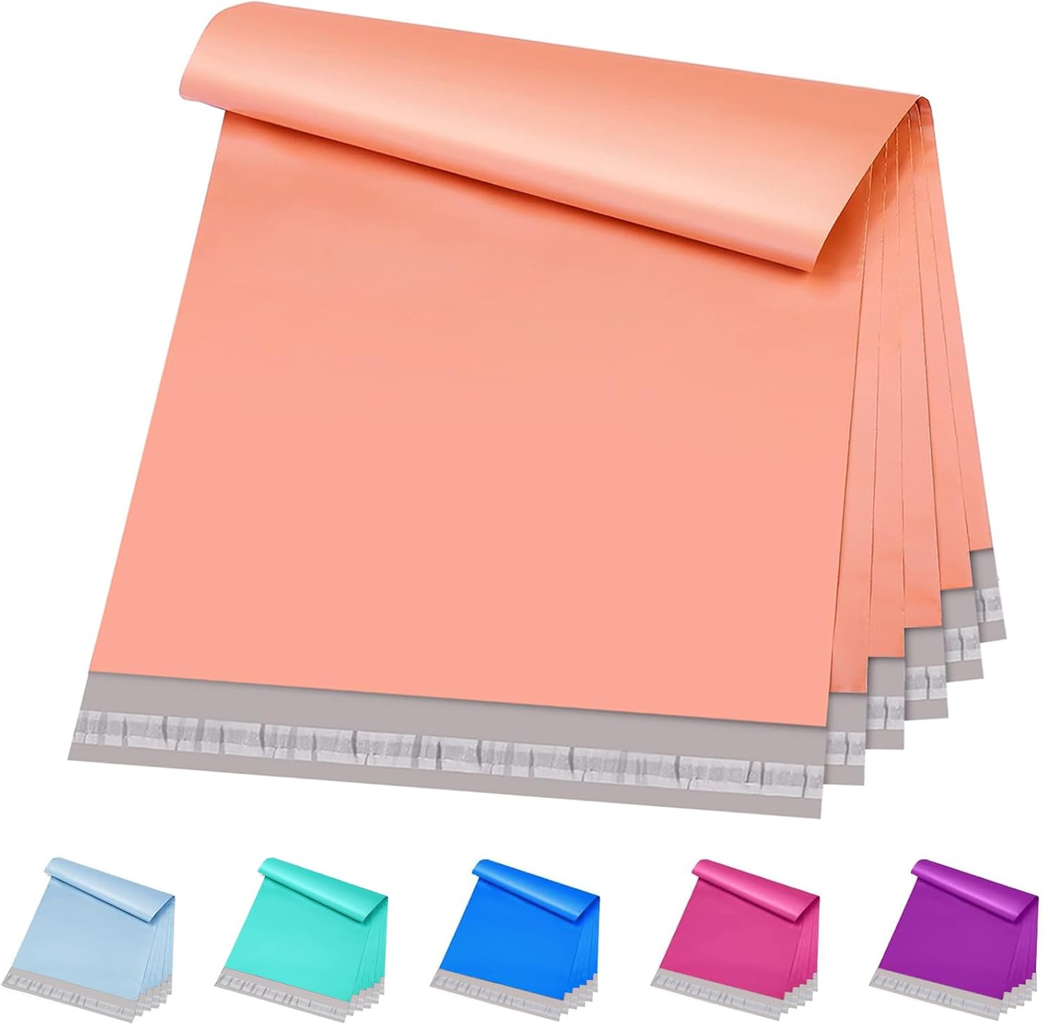 - Medium Size Poly Mailers: METRONIC peach pink poly mailers 12x15.5 inches, pack of 100. These flexible shipping mailers are great for shipping light and non-fragile products, such as clothing, apparel and accessories, tshirt, shoes, jeans, books, toys, cosmetics and much more!