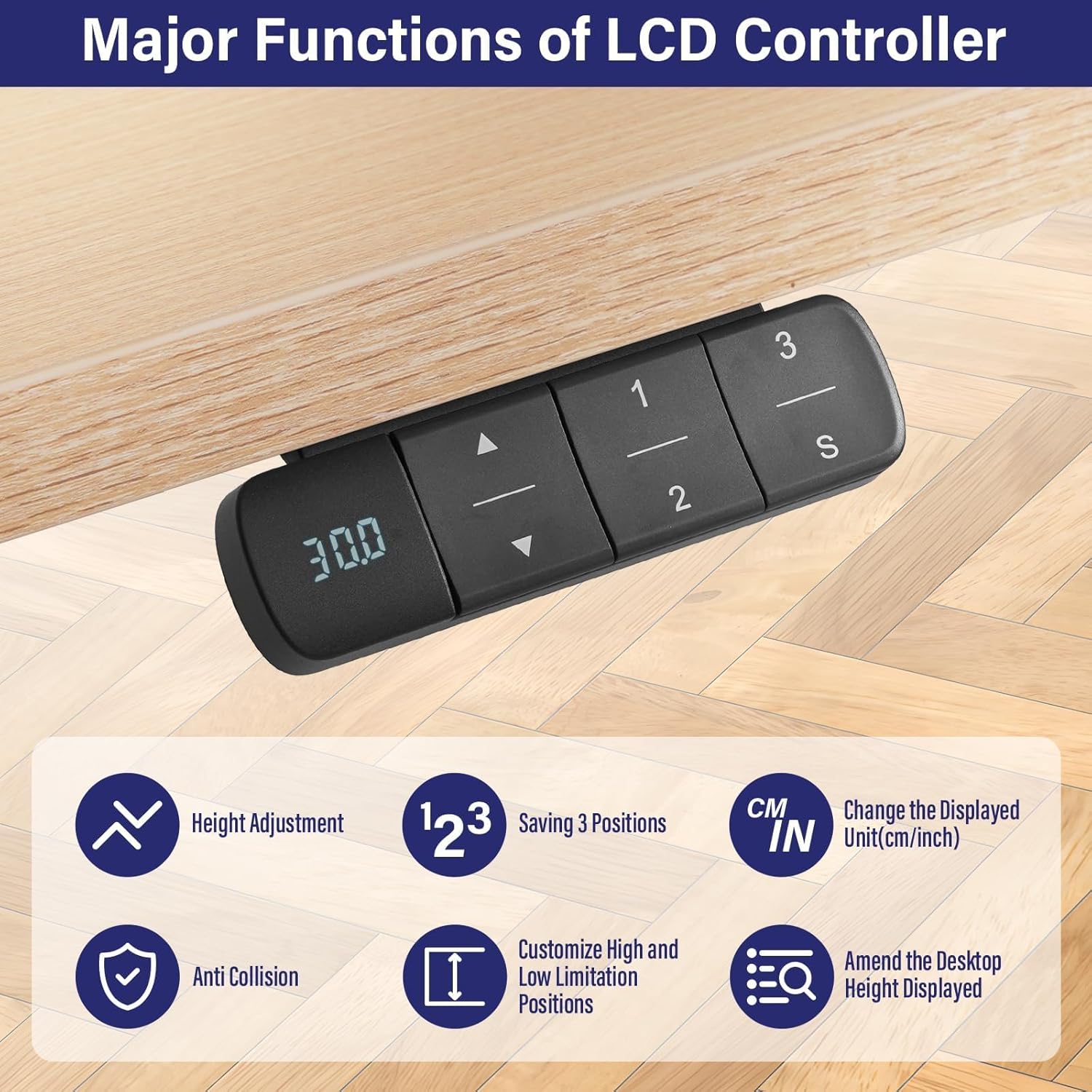 - Multi-Function: Easy and convenient to adjust the comfortable height and save 3 memory positions. Anti-collision function protects desk from colliding into obstacles. LED display clearly shows you the exact height of the desk. Unit conversion function helps you to change the unit between inch and cm. Container and self-stop positions is used to limit the movement area of desktop.