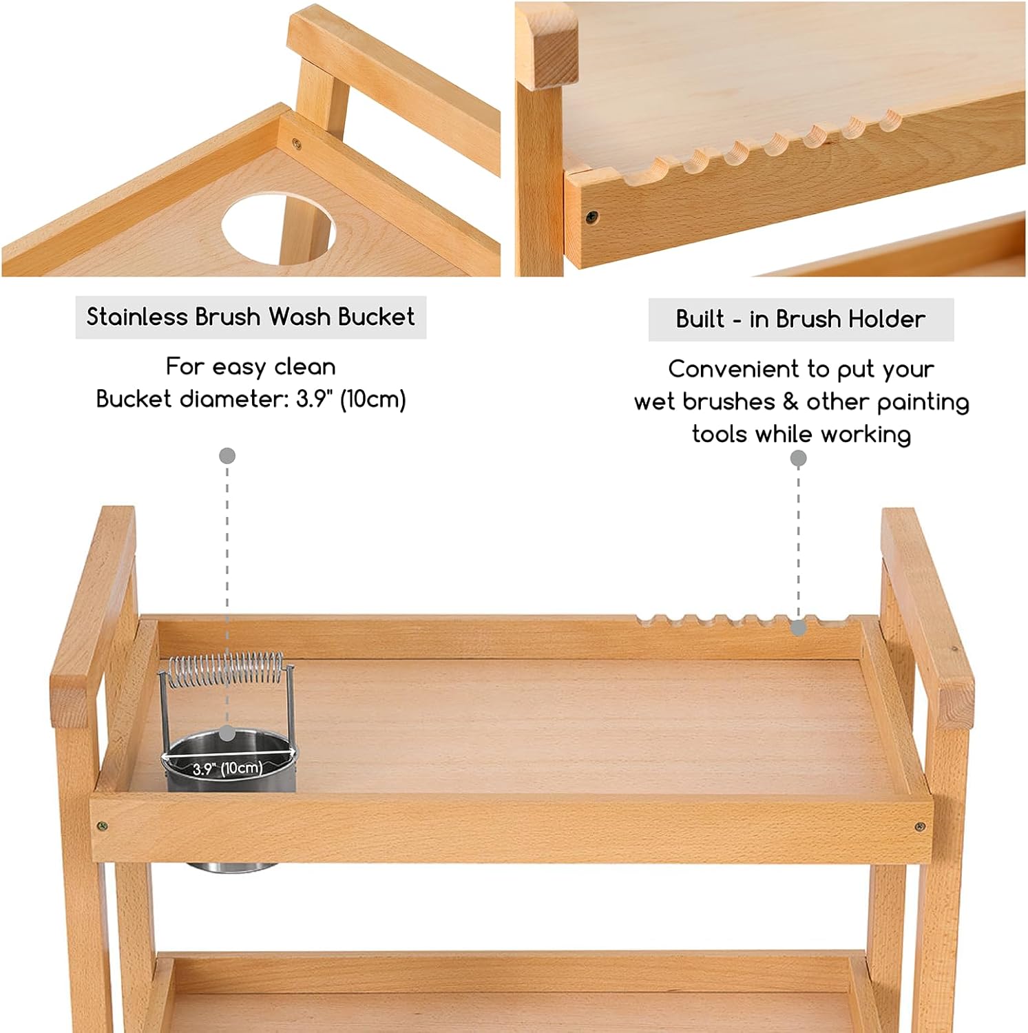 - SOLID BEECHWOOD STUDIO ART CART: The wood storage trolley art cart in size 35'' x 28-1/3'' x 15-3/4'', made of solid beechwood, natural, light-weight, and sturdy. It can hold weight up to 88lbs. Oil finished surface is super smooth and ZERO-glitch. Hand-sanded corners and edges provide maximum security.
