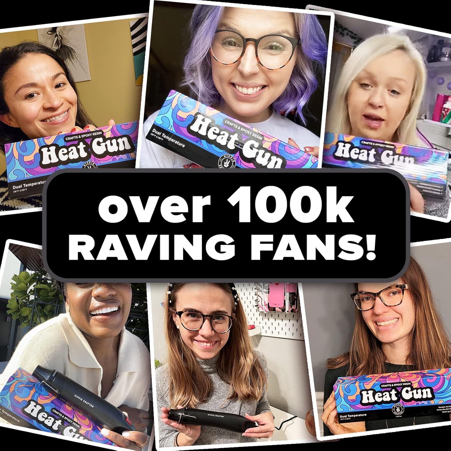 - DUAL TEMPERATURE QUICK HEAT: Our premium quality 300W heat gun for crafts heats up in seconds to a hot air blower with dual temp settings for temperatures from 212°F on low power to 392°F on high.