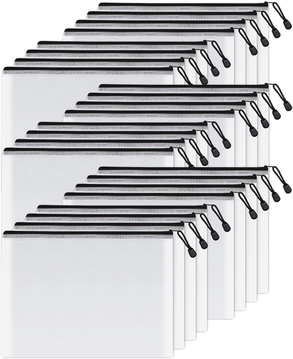 SUNEE Mesh Zipper Pouch 10x14 in (Black, 24 Packs), Extra Large Water-Resistant Zip Bag for School Office Supplies, Puzzles & Games Organizing Storage