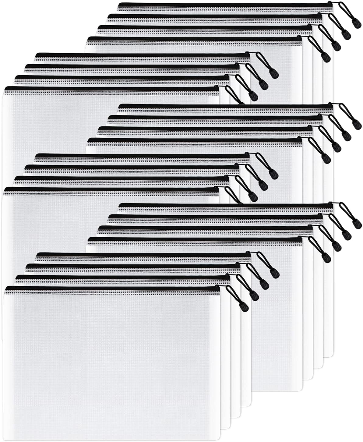 SUNEE Mesh Zipper Pouch 11x16 in (Black, 24 Packs),Extra Large Water-Resistant Zip Bag for School Office Supplies, Puzzles & Games Organizing Storage