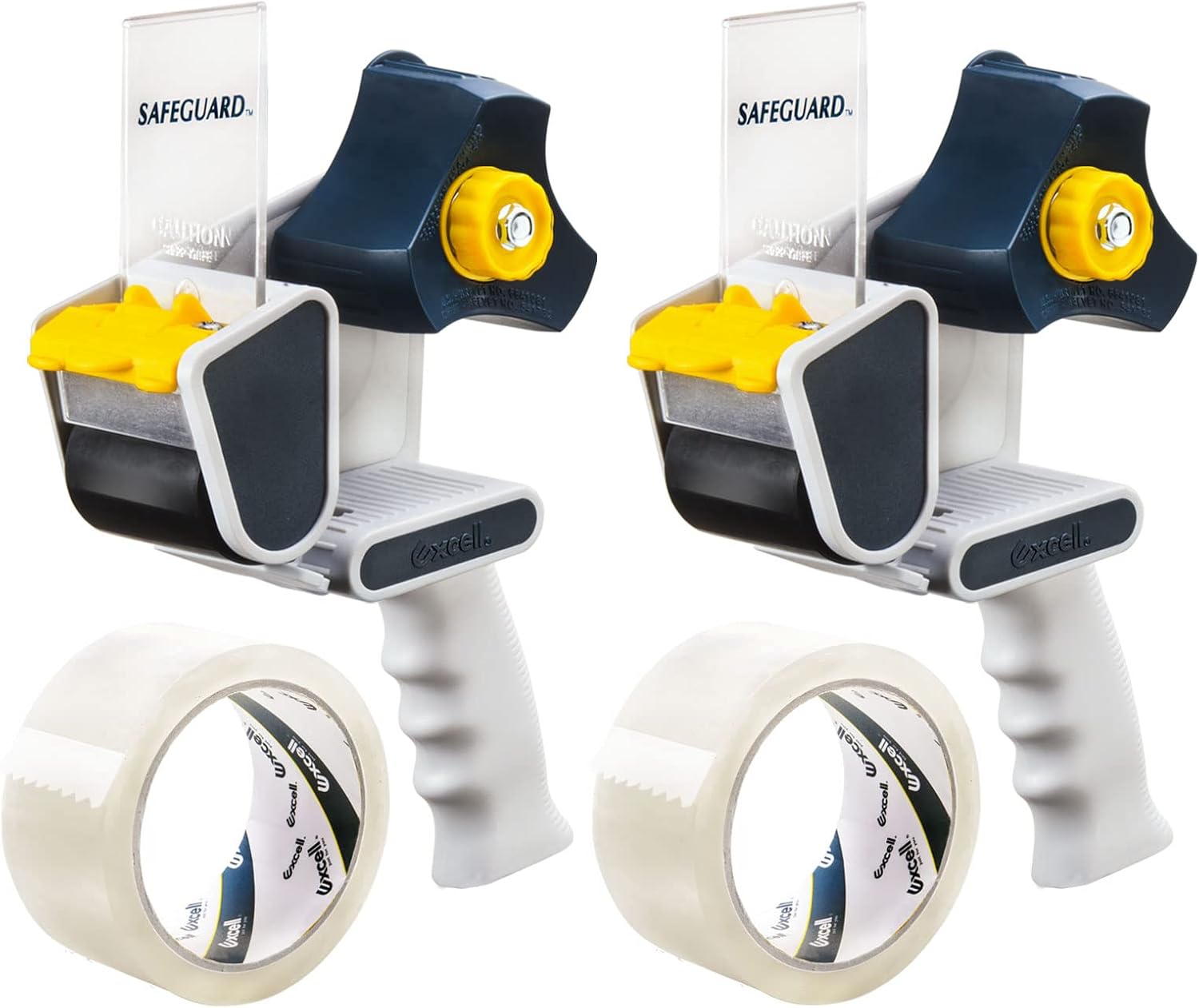 - WHAT YOU GET - Includes two Excell SAFEGUARD Tape Dispensers (2"Wide 3"Core) and 2 transparent tapes (1.88" x 54.6 yd).