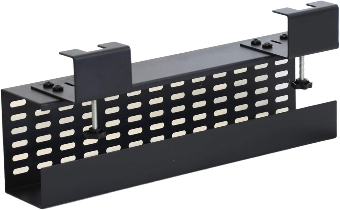 - Under-desk cable management tray with clamp mounting option: use the mounting clamp to secure it to the table (no drilling required); Or be attached by screws under most wood or wood-composite desks.