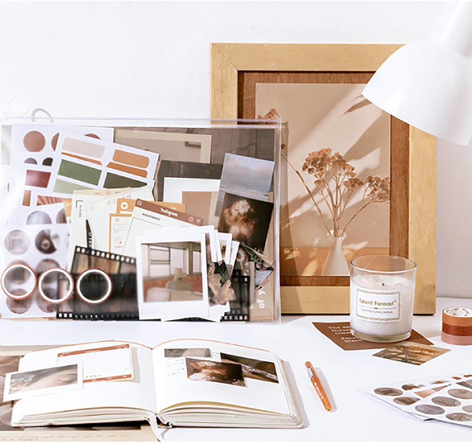- Big Series: 64PCS material elements, including A4 size poster x 4, A5 size poster x 4, coated paper stickers x 15 sheets, LOMO card x 5, PET transparent tapes x 5, mini coated stickers x 9 sheets, letter papers x 5pcs, washi tapes x 3 rolls, writable social cards x 14pcs. A really big series material for decoration.