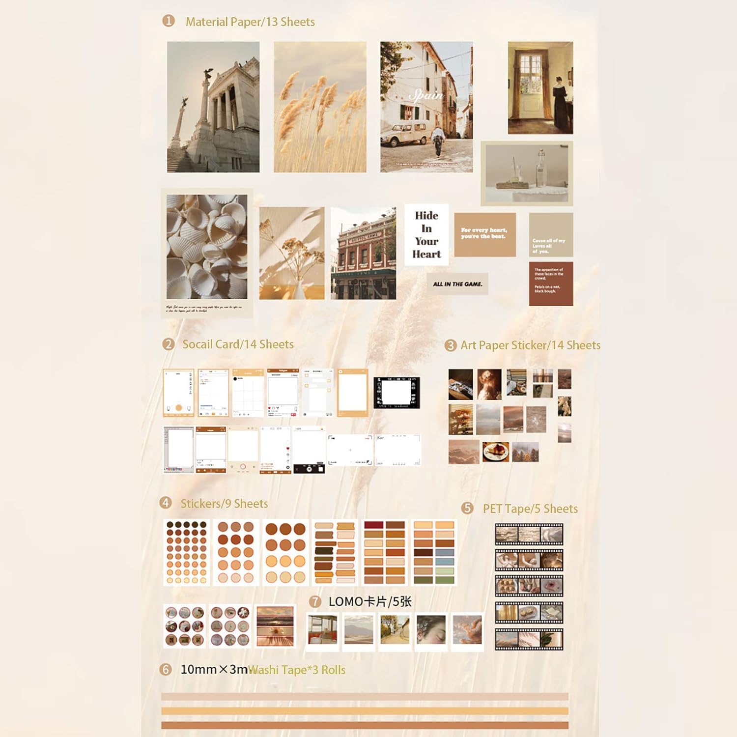 MAXLEAF 64PCS Literary Vintage Ins Style Scrapbook Bullets Journals Decoration Material Pack for DIY Scrapbook Album Decoration with Poster Tapes Stickers (Yellow)