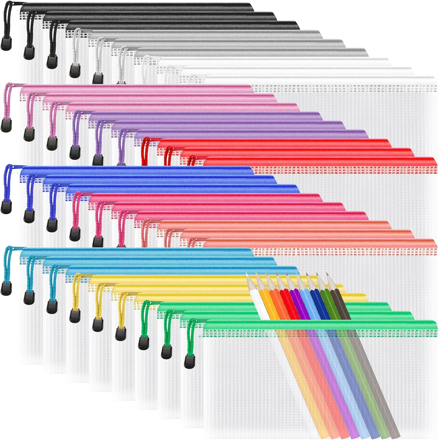 Umriox Pencil Pouches Bulk, 9.2 x 4.7 in (12 Colors, 36 Packs), Mesh Zipper Pouch Pencil Case, Small Zipper Pouches for Bill Stationary Cosmetics Travel Storage