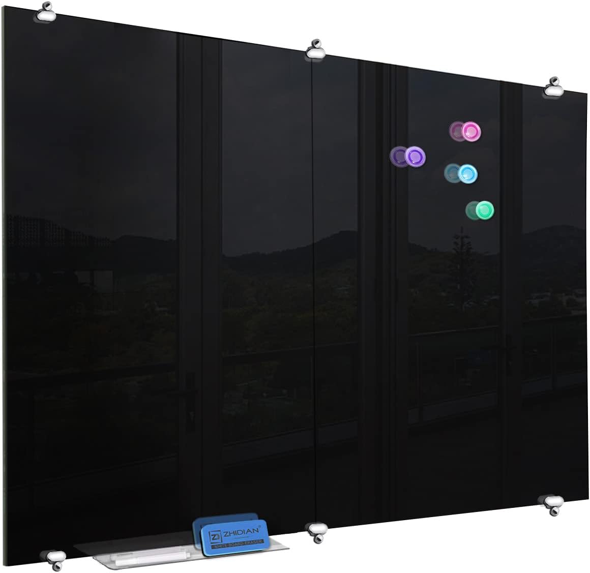 Magnetic Black Glass Dry Erase Board, 72" x 43" ZHIDIAN 2-in-1 Ultra-Large Splicing Black Glass Whiteboard for Wall, Home Office Frameless Glass Blackboard