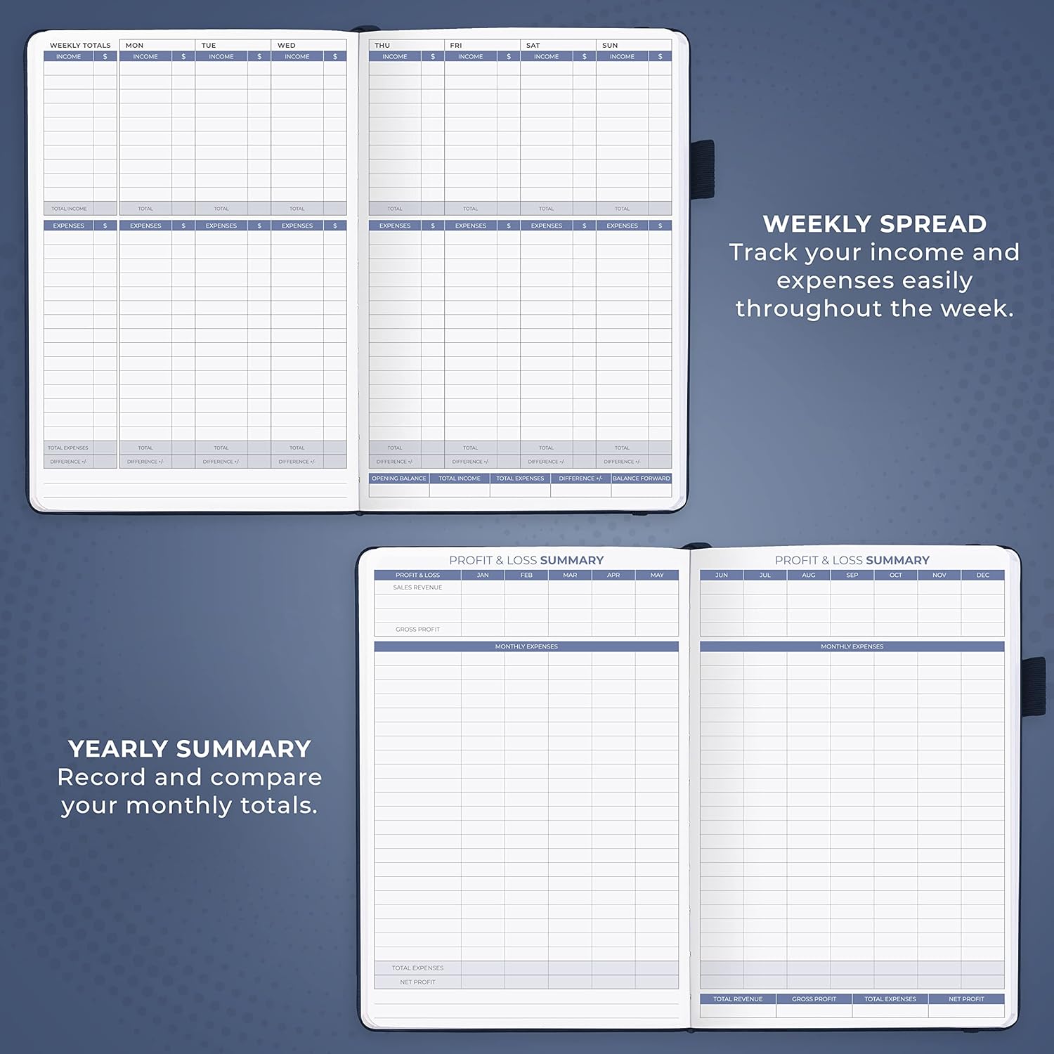 - SWITCH TO EFFICIENT & STRESS-FREE ACCOUNTING: This accounting book is undated and lasts a whole year and has 113 pages, including 53 weekly views, an annual summary, empty note pages, and, at the back, a spacious pocket for receipts.