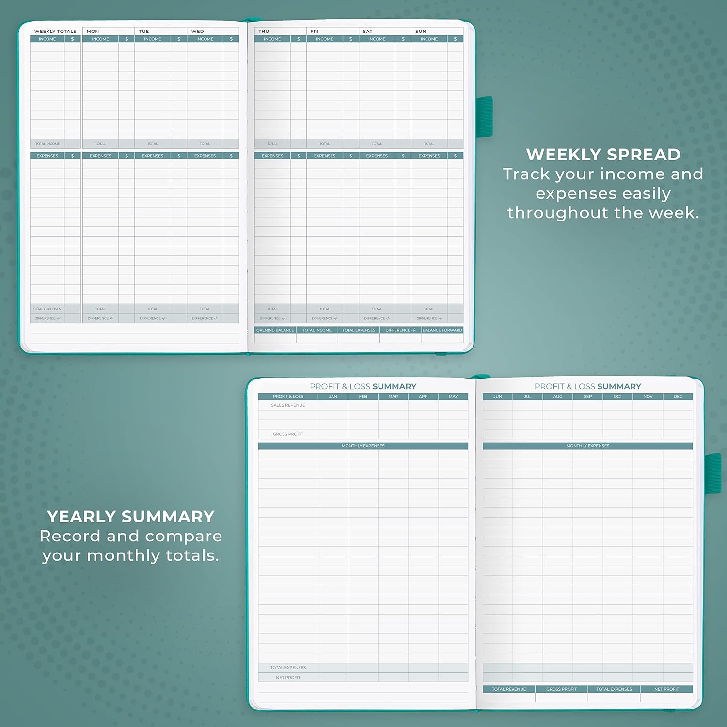 - SWITCH TO EFFICIENT & STRESS-FREE ACCOUNTING: This accounting book is undated and lasts a whole year and has 113 pages, including 53 weekly views, an annual summary, empty note pages, and, at the back, a spacious pocket for receipts.
