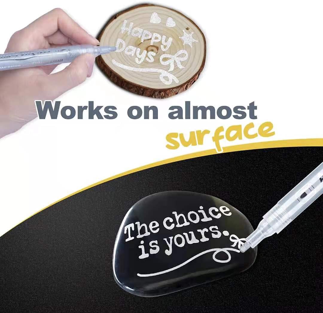 - 【Wide Range of Applications】The water-based Silver paint markers are suitable for use on rock, wood, stone, ceramic, metal, pottery, comic books, terracotta pots, polymer clay, porcelain, plastic,canvas, glass, mirrors, paper, and more. They are suitable for a variety of artistic projects, such as decorating wedding and designing labels. AKARUED Silver paint markers are perfect for students, teenagers, artists, and adults.