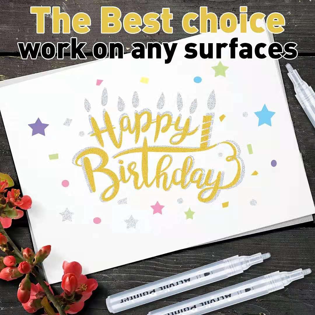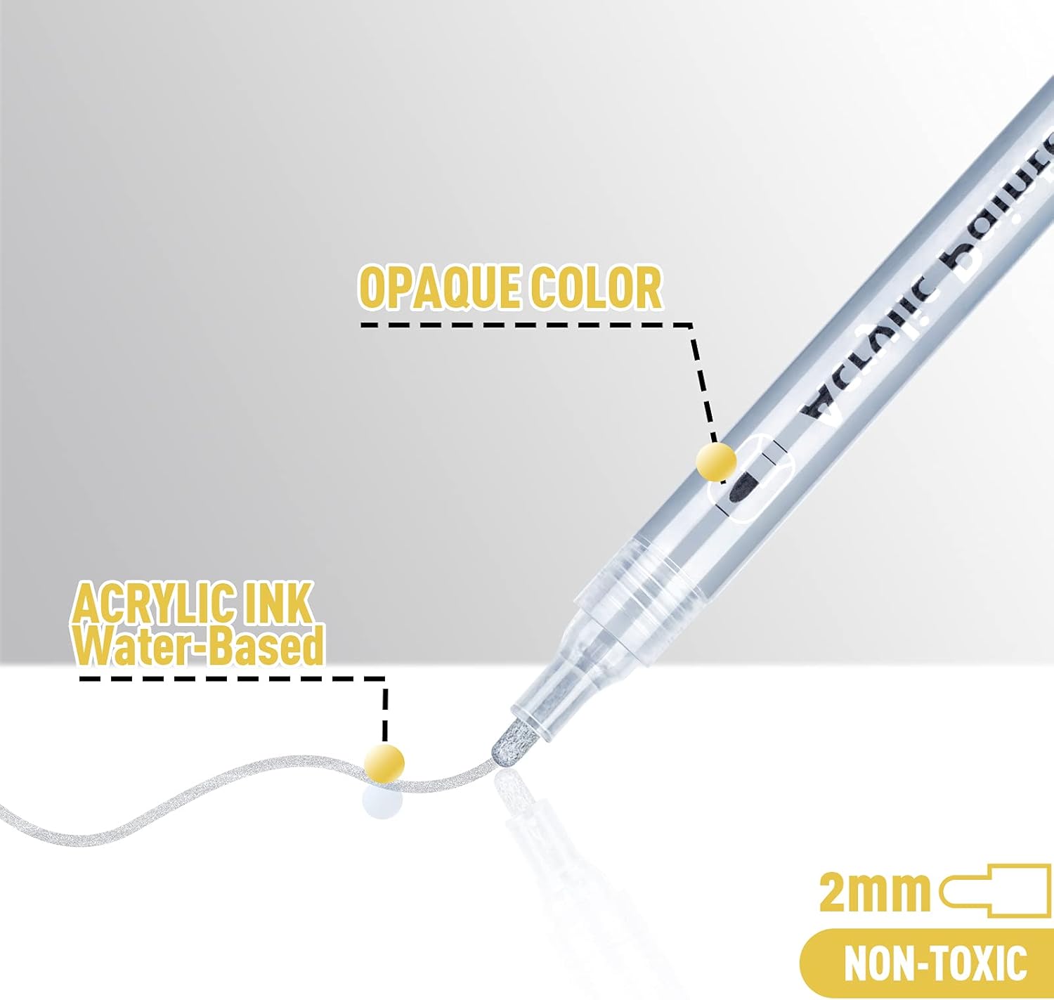 - 【Safe & Non-Toxic】This acrylic Silver paint pen is made with safe ink that meets ASTM D-4236 and EN71-3 standards, does not bleed, and does not contain any harmful chemicals. It is 100% safe for kids, students, teenagers & adults. The smooth writing experience allows kids and adults alike to enjoy drawing with peace of mind. Whether for holiday decorations or artistic creations, it meets your needs and is the ideal multifunctional drawing tool.