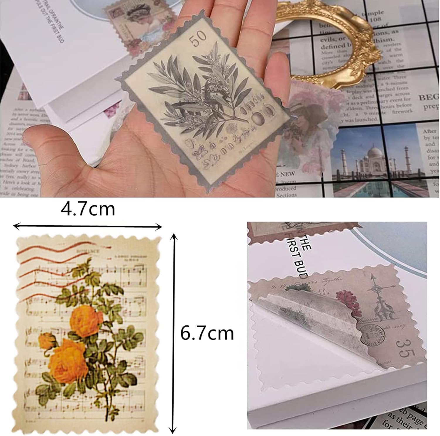 - MULTI-USE - These vintage stamp-like washi stickers is perfect for handmade cards, mailing envelopes, planners, traveler's journals, scrapbooks, garden journals, handmade cards, diary, photo albums, school projects, and much more. Reusable clean tear with zero residue.