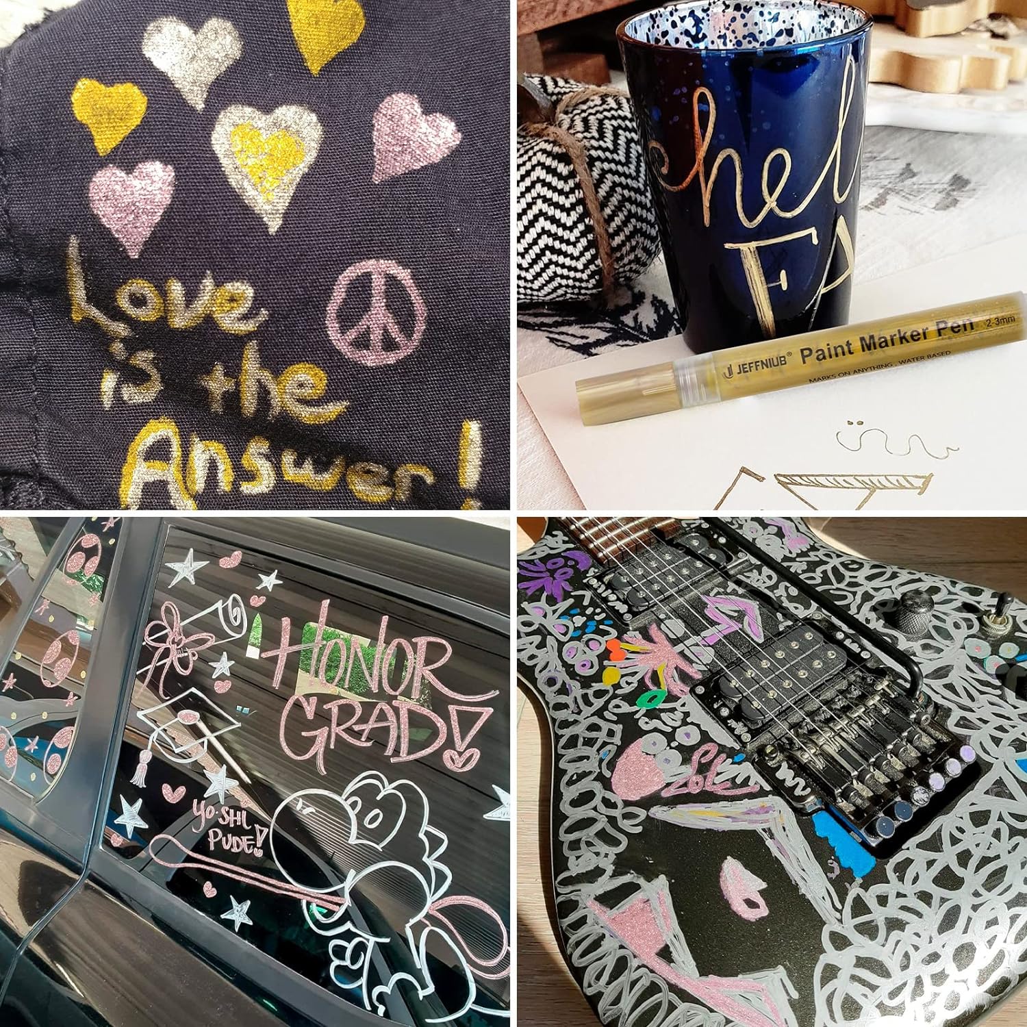 - 【Mark on Dark or Light Color Surfaces】Eye-catching metallic shining contrast color, polarized color under light.Suitable for leave message and permanent sign. Works on rock,fabric,ceramic, glass, wood,plastic,canvas, mugs, blackboard almost any solid surface