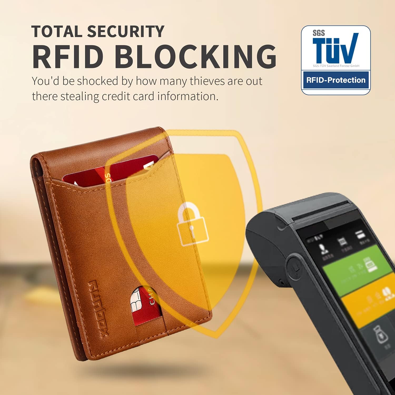 • RFID Blocking - This wallet for men are designed by German designer, made of genuine leather material, durable, wear- resistant and scratch-resistant. Our wallets block the 13.56 MHz band and protect against data theft by RFID scanners