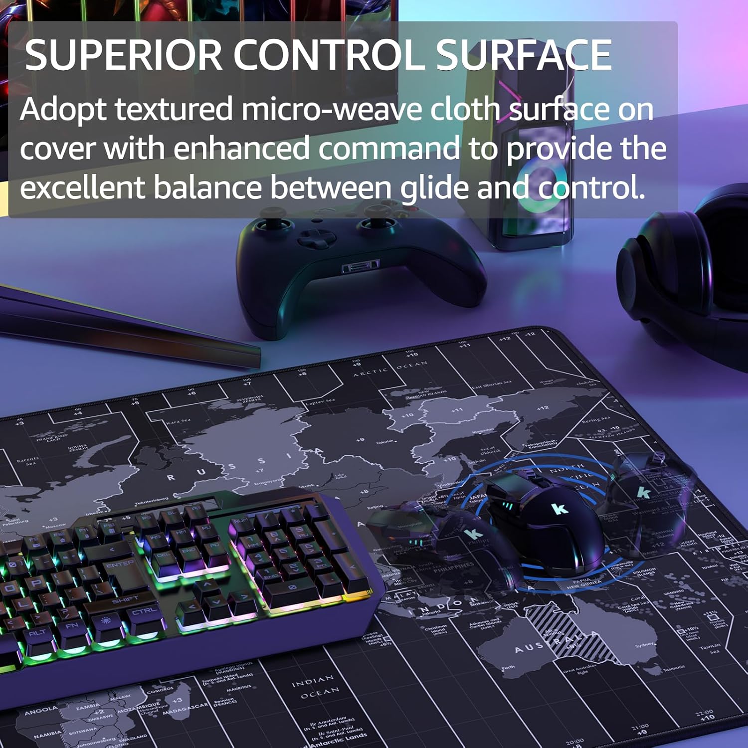 - Superior Control Surface: Ktrio extended mouse pad adopts textured micro-weave cloth surface on cover with enhanced command to provide the excellent balance between glide and control. The performance-tuned surface optimizes mouse tracking accuracy for both optical and laser sensors.