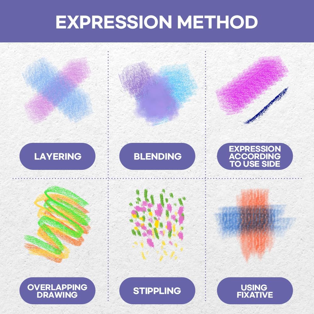 - Exceptional Color Expression: Achieve your dream artwork with just a gentle touch using not just any pastel, but VIOLETTO Pastels. Its delicate and soft particles provide a contemporary three-dimensional effect, with each shade vividly manifesting itself in your artwork.