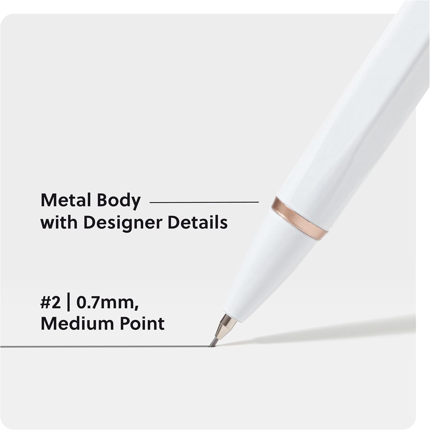 U Brands Cambria Mechanical Pencils, Set of 12, White and Black, Rose Gold Details, Medium (0.7 mm) Point, Lead and Eraser Refills