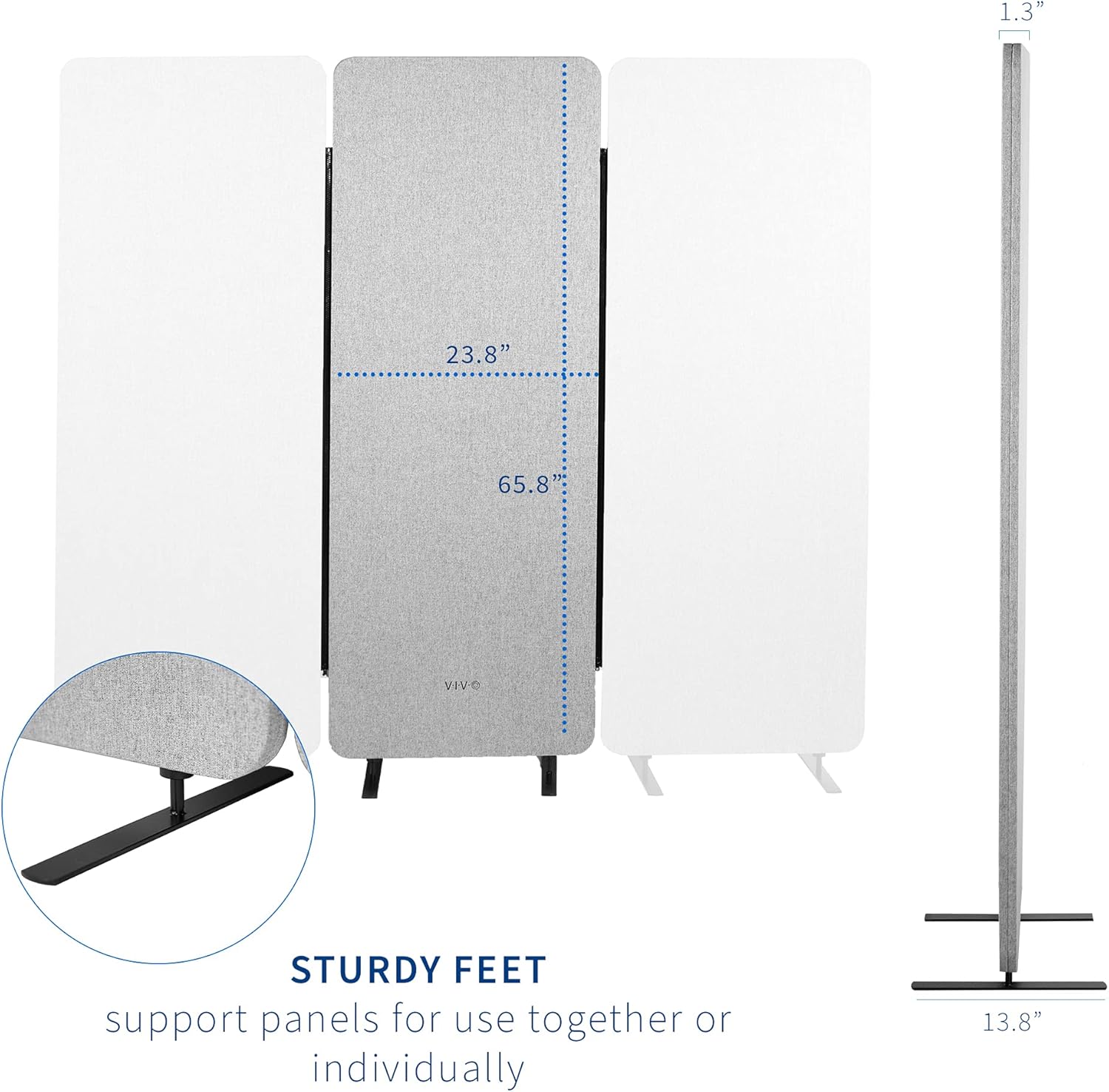 VIVO Freestanding 24 x 66 inch Privacy Panel, Cubicle Divider, Acoustic Wall Partition, Single 24 inch Panel with 2-Sided Zipper Attachment System, Gray, PP-1-T024G