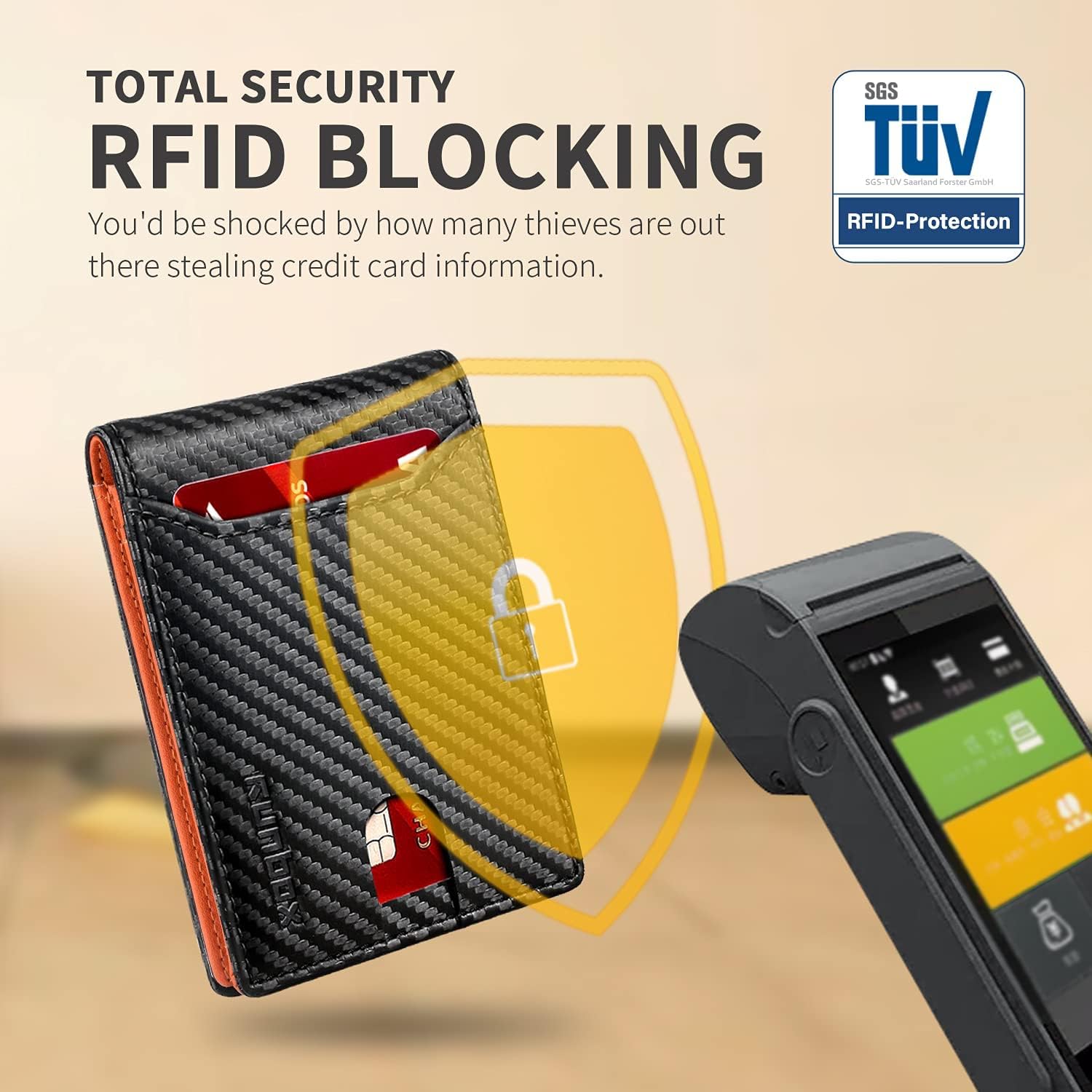 - RFID Blocking - This wallet for men are designed by German designer, made of genuine leather material, durable, wear- resistant and scratch-resistant. Our wallets block the 13.56 MHz band and protect against data theft by RFID scanners