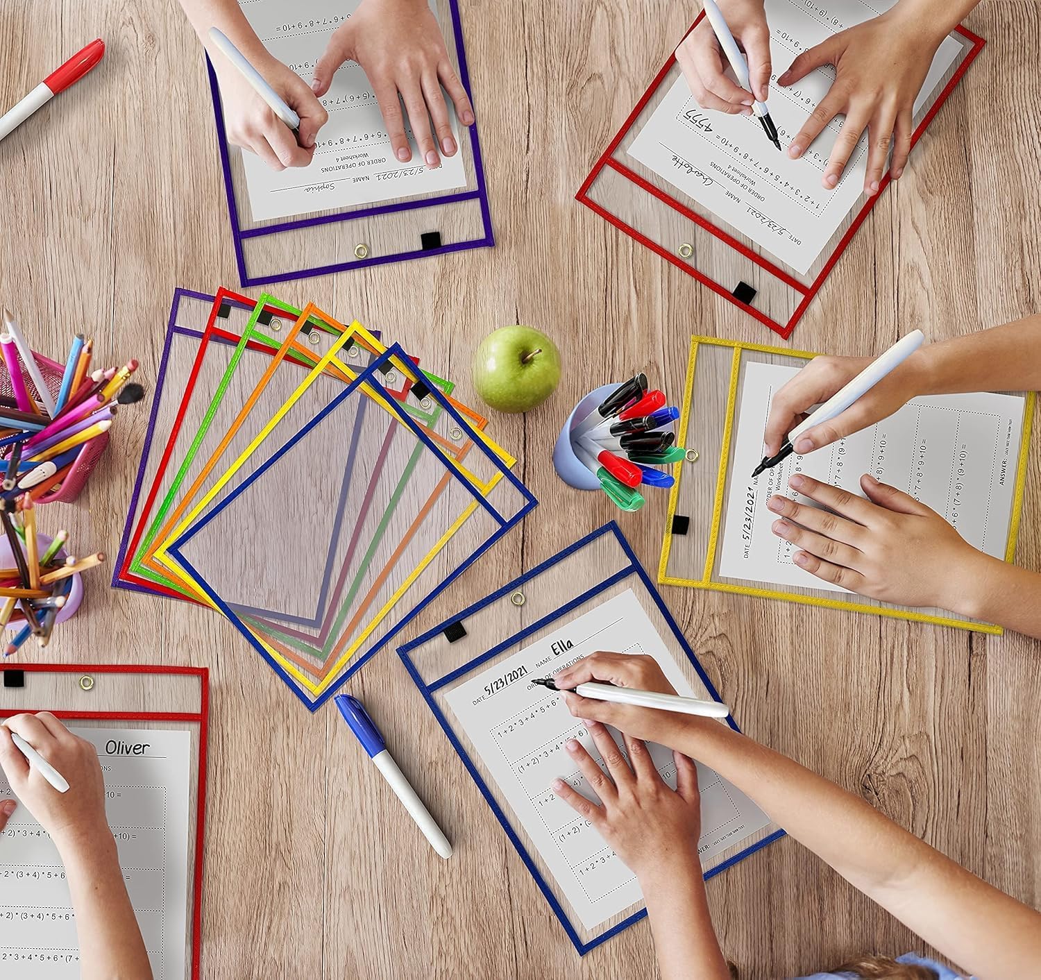 SCRIBBLEDO Dry Erase Pockets Reusable Dry Erase Sleeves with Marker Holder Colorful Dry Erase Pocket Sleeves for School Classroom or Work Ticket Holders Assorted Colors 50 Pack