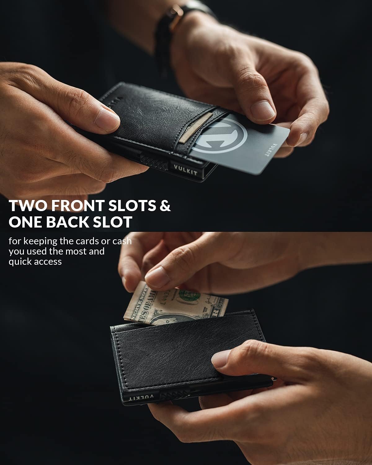 VULKIT Men's Slim Wallet Pop Up Card Holder RFID Blocking Metal Wallet Minimalist Design Holds Up to 11 Cards