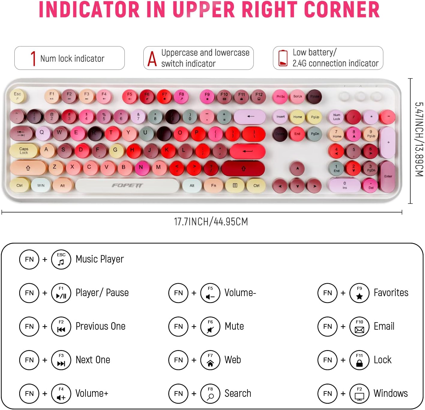 FOPETT Wireless Keyboard and Mouse Sets,Reliable 2.4 GHz Connectivity for PC,Laptop,Smart TV and More (White Colorful)