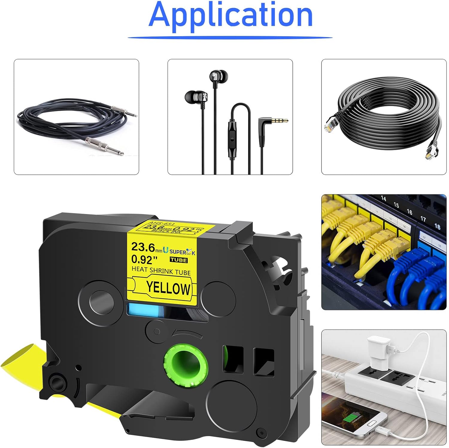 - USUPERINK HSe-651 Heat Shrink Tubes label tapes are perfect to mark cables,fibers and wires and can be used for cables in diameter 7.3 mm(0.29inch) and 14.3mm (0.56inch) .