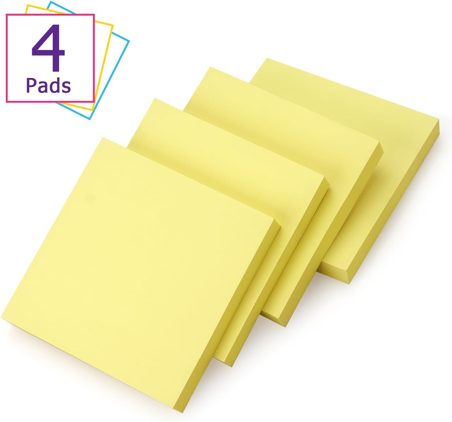 Sticky Notes 3x3 Self-Stick Notes Bright Colors Sticky Notes 4 Pads 100 Sheets/Pad (Yellow)