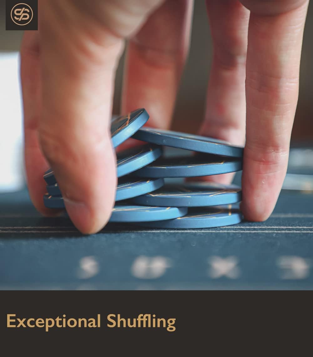 - One-of-a-kind Design: The design of the chip pattern is inspired by the Art Deco art style of the early 20th century. The streamlined lines and simple geometric composition perfectly combine the grandeur of the roaring 1920s and contemporary simplicity to elevate the poker experience to a new level.