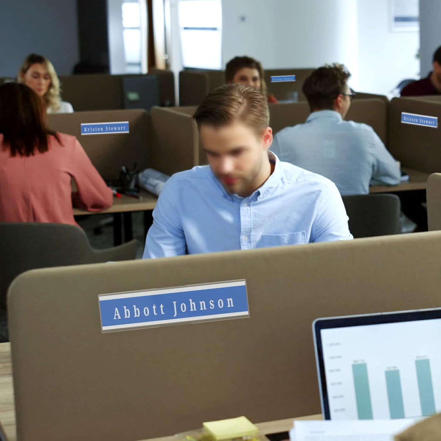 - WALL-MOUNTED NAMEPLATE HOLDER - This wall-mounted nameplate holder contains 12 sets, and they are suitable for 2"x8" standard printing paper. The clear nameplate holder can clearly display your name, room number, and office name when hung on the wall. It is very convenient for you to display your name in a professional way.