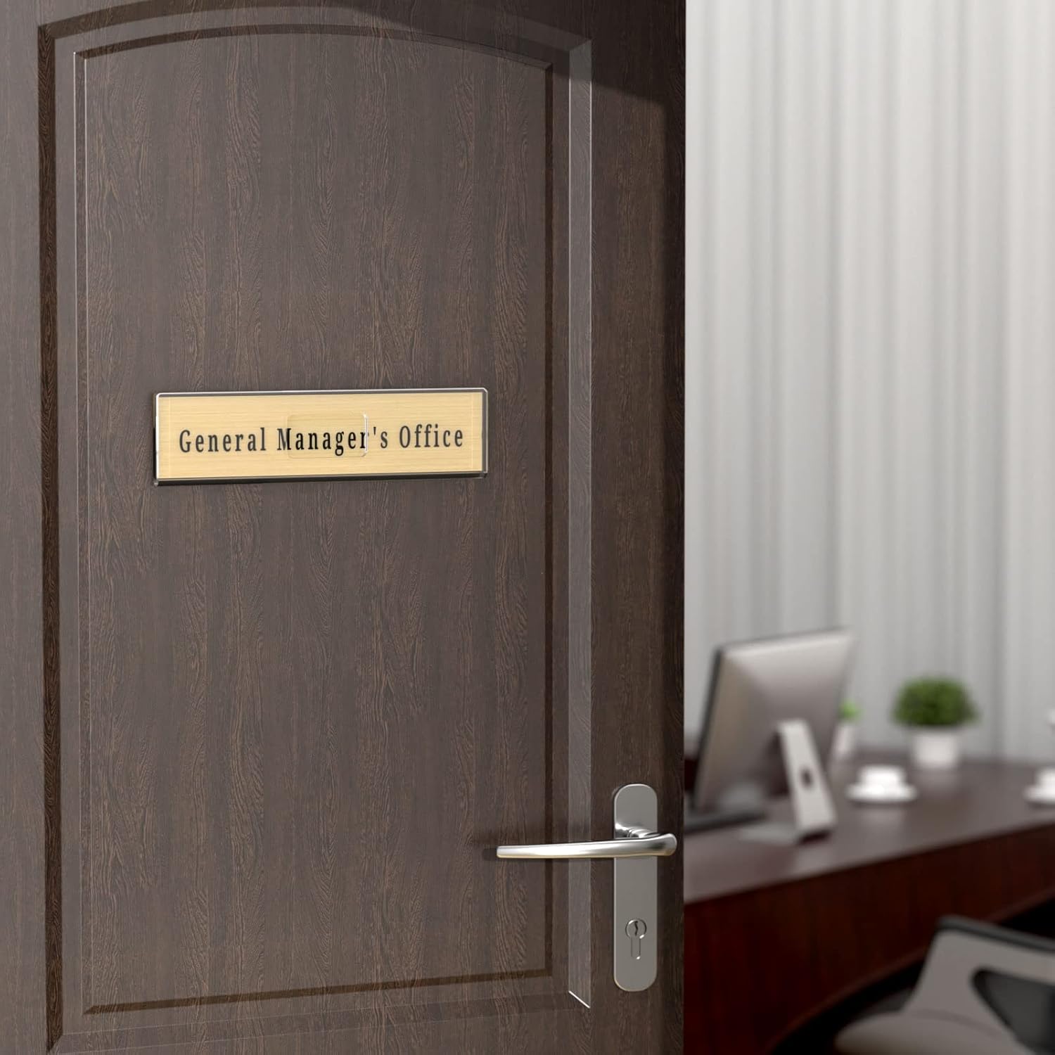 - EASY TO USE - Use a 2x8 inch standard printing paper to print out the text you want to use, and then you need to insert the copy paper into the wall-mounted nameplate holder from both sides or above the nameplate, so that it can be displayed directly. Then use included 3M double-sided adhesive tapes to fix the nameplate on the wall or door, and you can fix it on any scene you want to use without drilling.