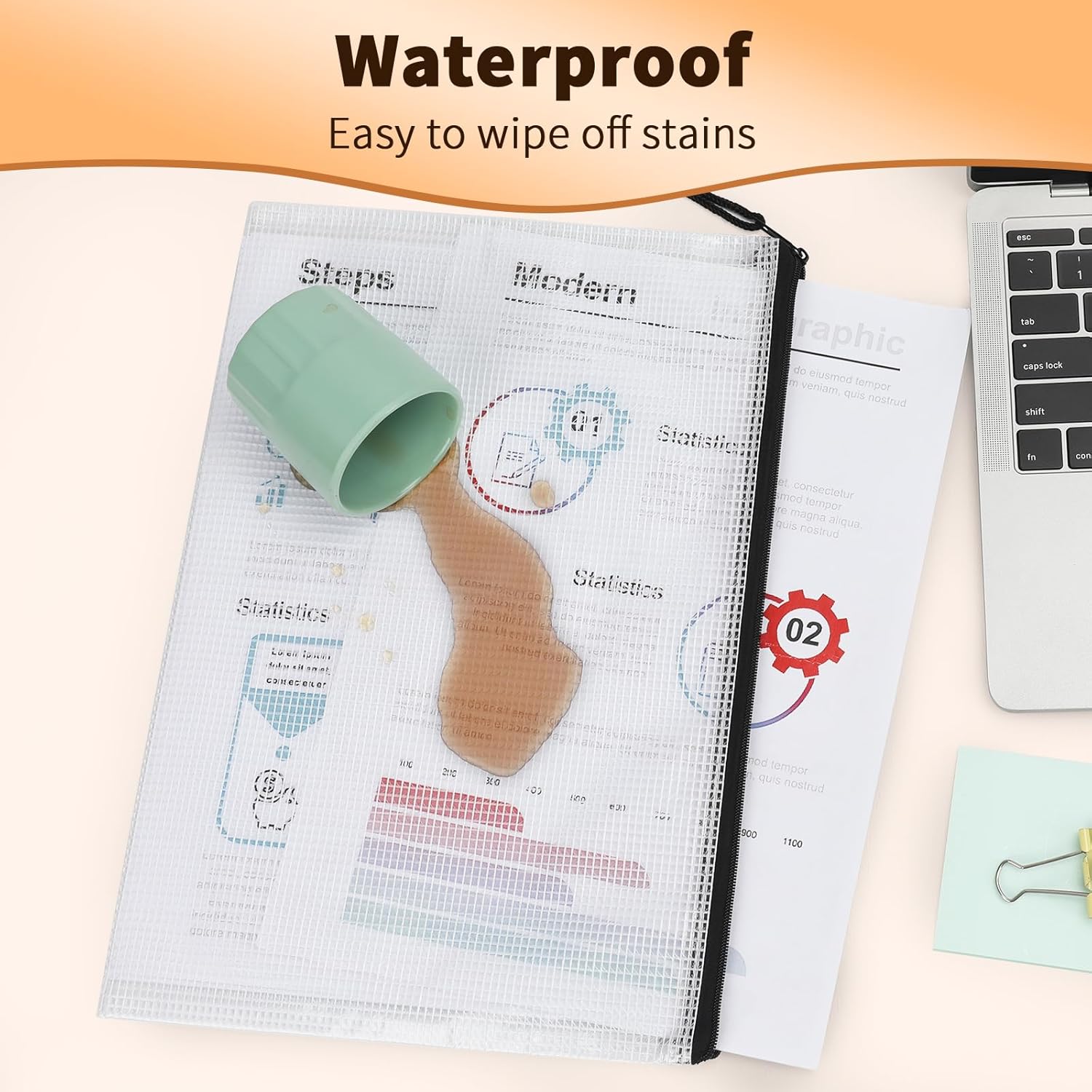 Umriox Zipper Mesh Document Pouch, 13.0 x 9.0 in (Black, 18 Packs), Clear Zipper Pouches, Waterproof Zipper Pouches for Office Supplies Cosmetics Travel Storage