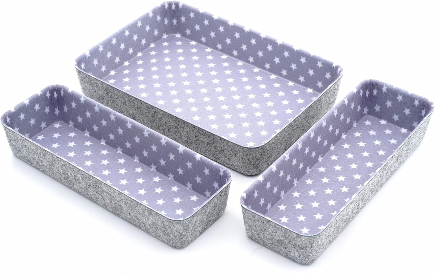 - Package content: pack of 3 drawer organizers , 2 tones pop color contrasts ( inner Star pattern ,outer grey color ) .Economic affordable for home office storage and organization. Trendy & modern zigzag elements show a taste of cozy room interior décor.