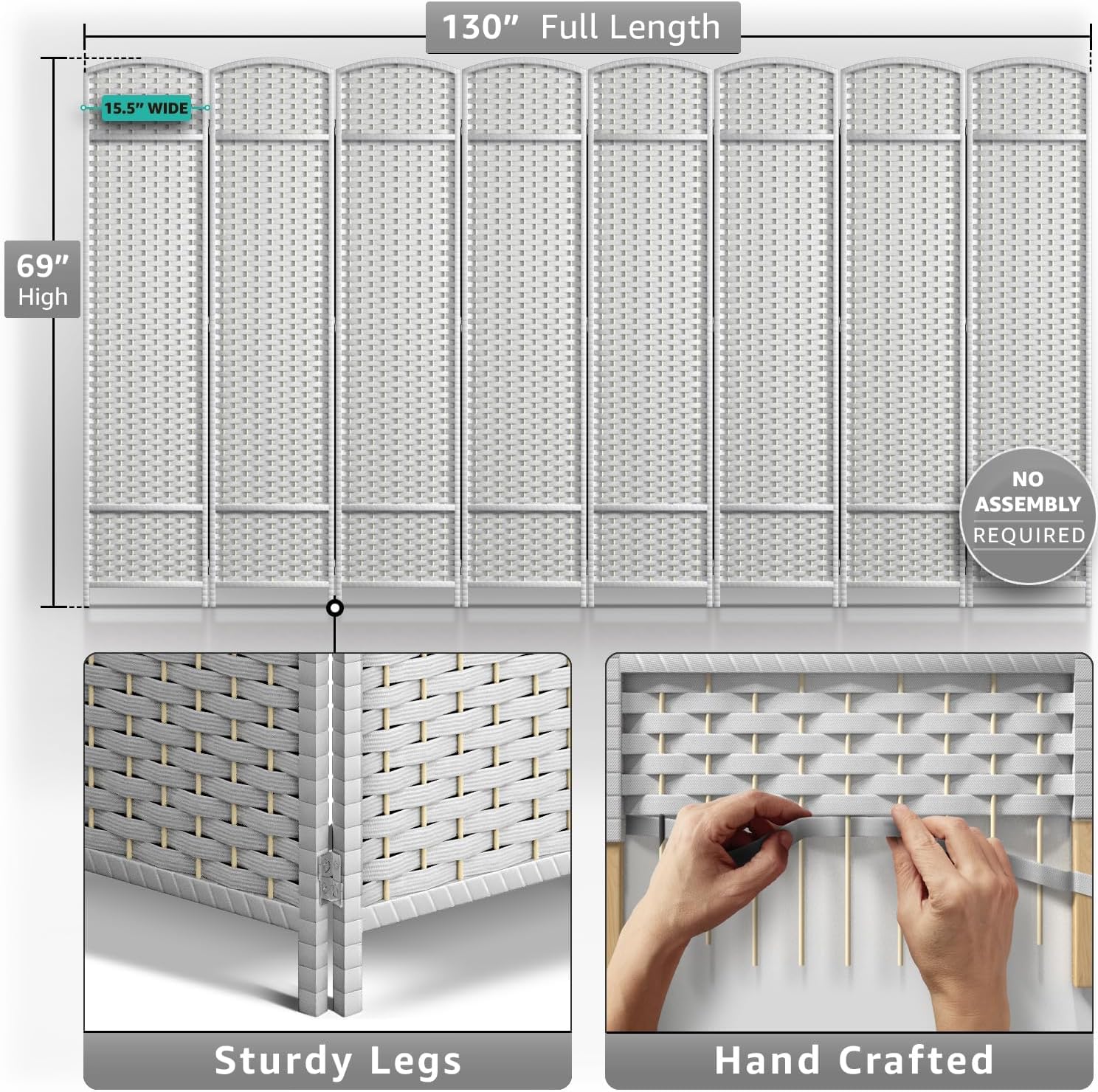 - Extra Wide Double Hinged Panels: Equipped with 8 panel 6 ft. tall double hinged panels, the room divider is extra wide for maximum coverage. Perfect as a privacy screen, it is also a great outdoor privacy screen freestanding overall unit measures 128 in x 69 in H