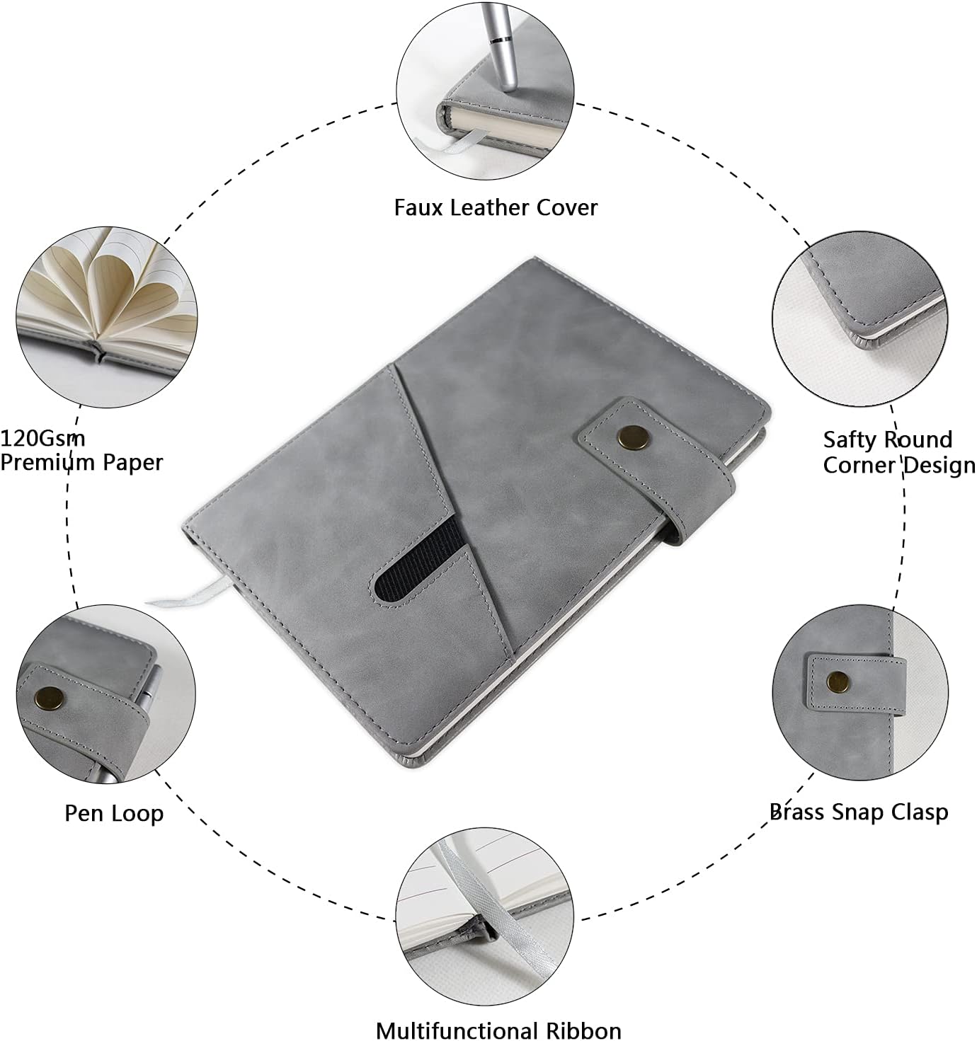 - 【Premium Thick Paper】- 5.9 X 8.4 inch journal notebook with 200 pages 100 gsm lined paper, thicker 30% than normal, this grey notebook is designed to avoid feathering and the paper is ink-proof, suit for most pens, but the wettest pen inks. Archival-quality pages made from acid-free paper-resists damage from light and air, the cream paper is easy on eyes.Let your creation more freedom on the wide ruled journal to write in.