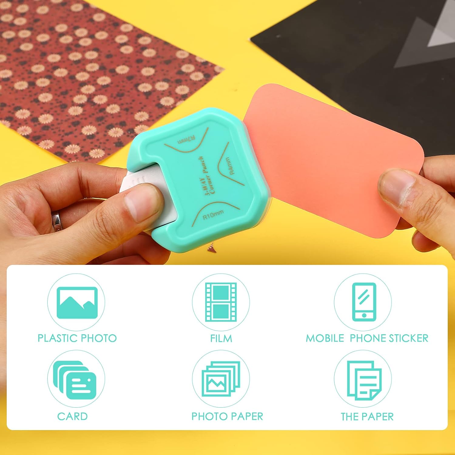 - 3 Way Rounded Corner Punch: Create perfectly finished scrapbooks and cards with 3-way round corner cutter. Designed to punch R4mm, R7mm, R10mm three different corner, this corner cutter is the perfect tool for giving some extra vitality to your creations. Give your paper craft projects an elegant finishing touch with this 3 in 1 corner rounder punch.