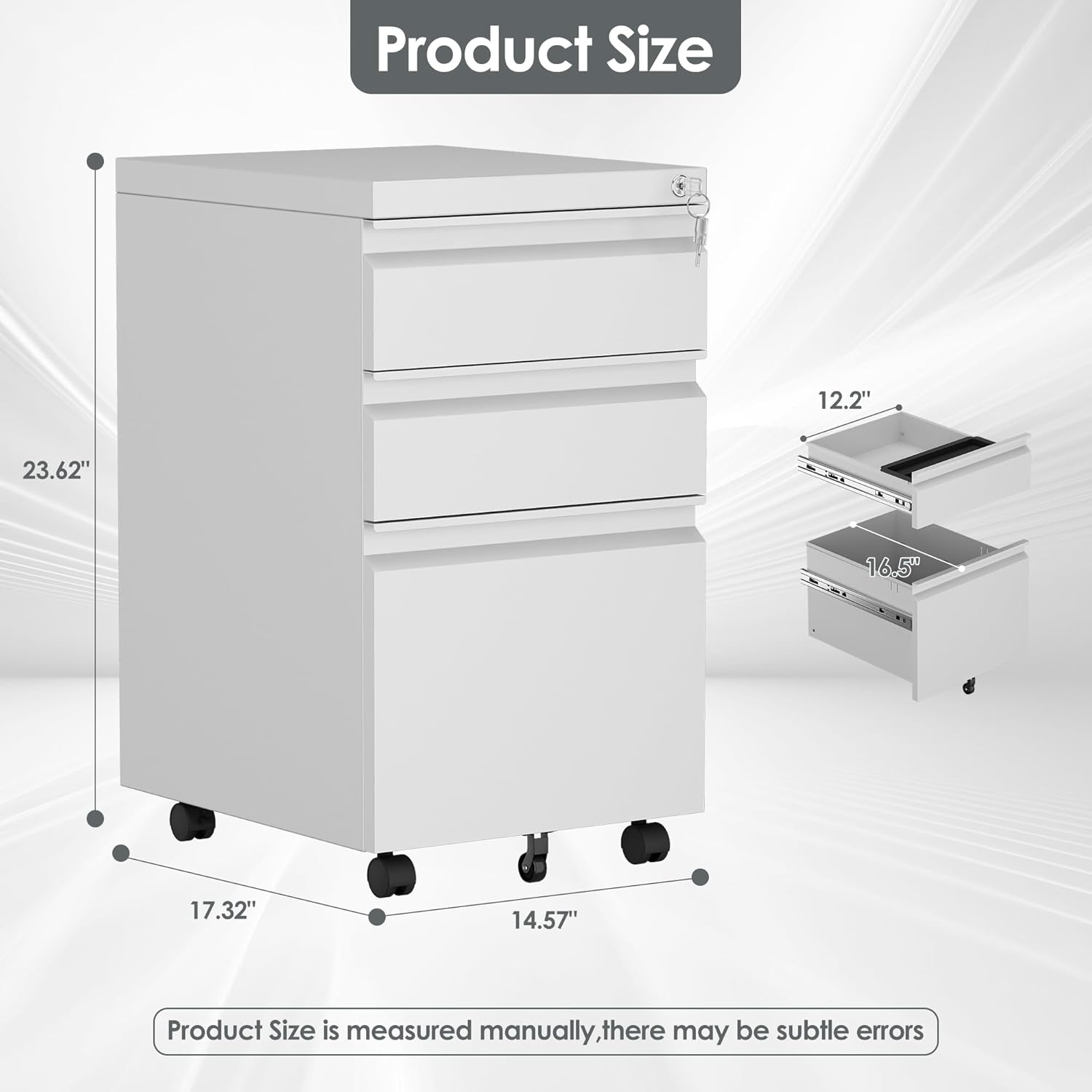 - ăSpecifications and Serviceă: Size is 17.32âD x 14.96âW x 23.62âH. Fully assembled except the casters, or if you have any assembly or quality problem,our friendly customer service team will response in 24 hours.
