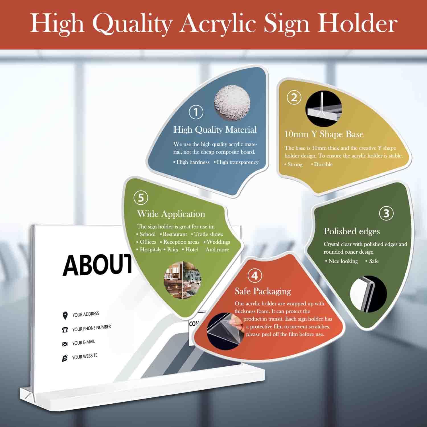 - 【Clear appearance】Clear appearance: high-quality acrylic, the logo holder is very clear and convenient for you to insert your advertisement and give your advertisement to your customers.