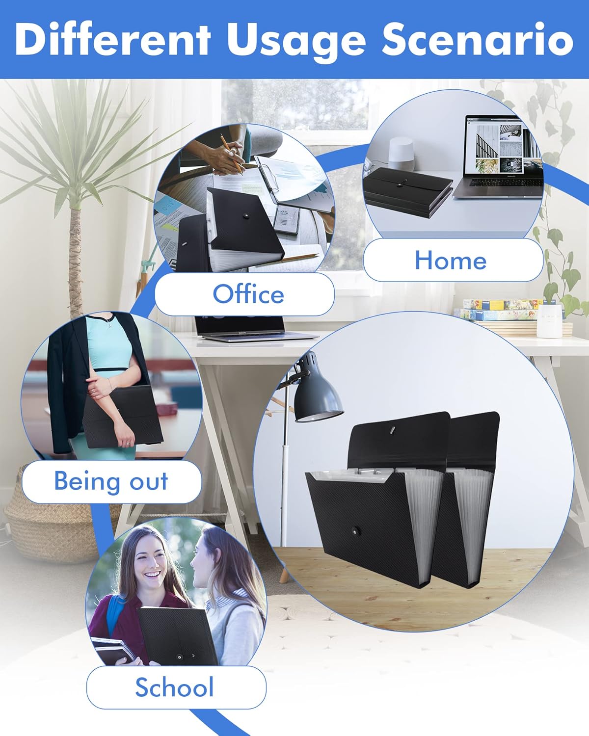 - What You Get : 2x Black 13-pocket Expanding File Folders, Size: 33 * 24 * 3.5 cm, which can store letters, A4 paper, documents, invoices, contracts and regular US papers, The document paper folder is easy to carry, can be put in your backpack, briefcase etc