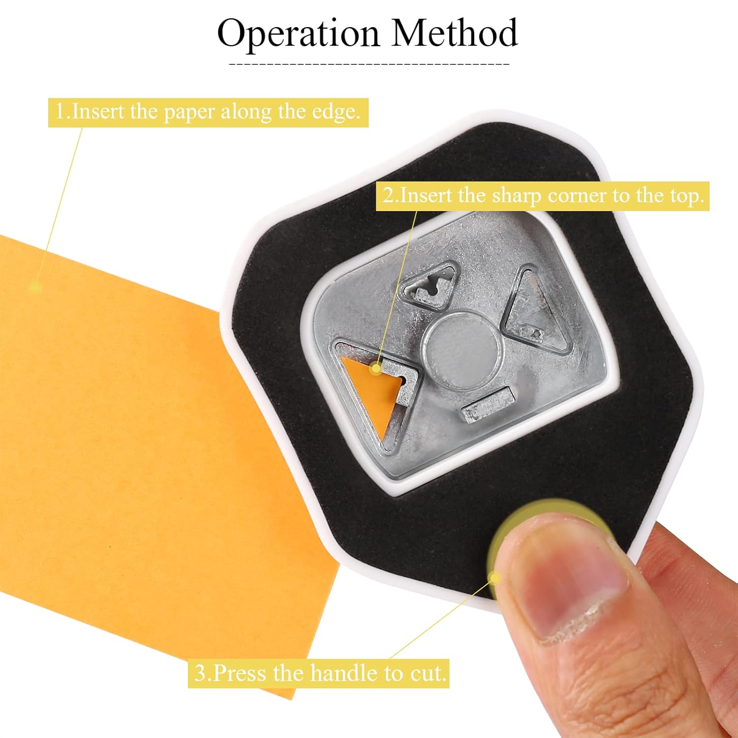 - Easy to Operate and Simple to Use: Simply push the corner of your paper inside until its properly lodged against the guides and press the handle down. Lever-type handle structure light and labor-saving. Perfectly works each time, consistently delivering great designs. The corner punch can also be used upside down to get a better view of the cutting process.